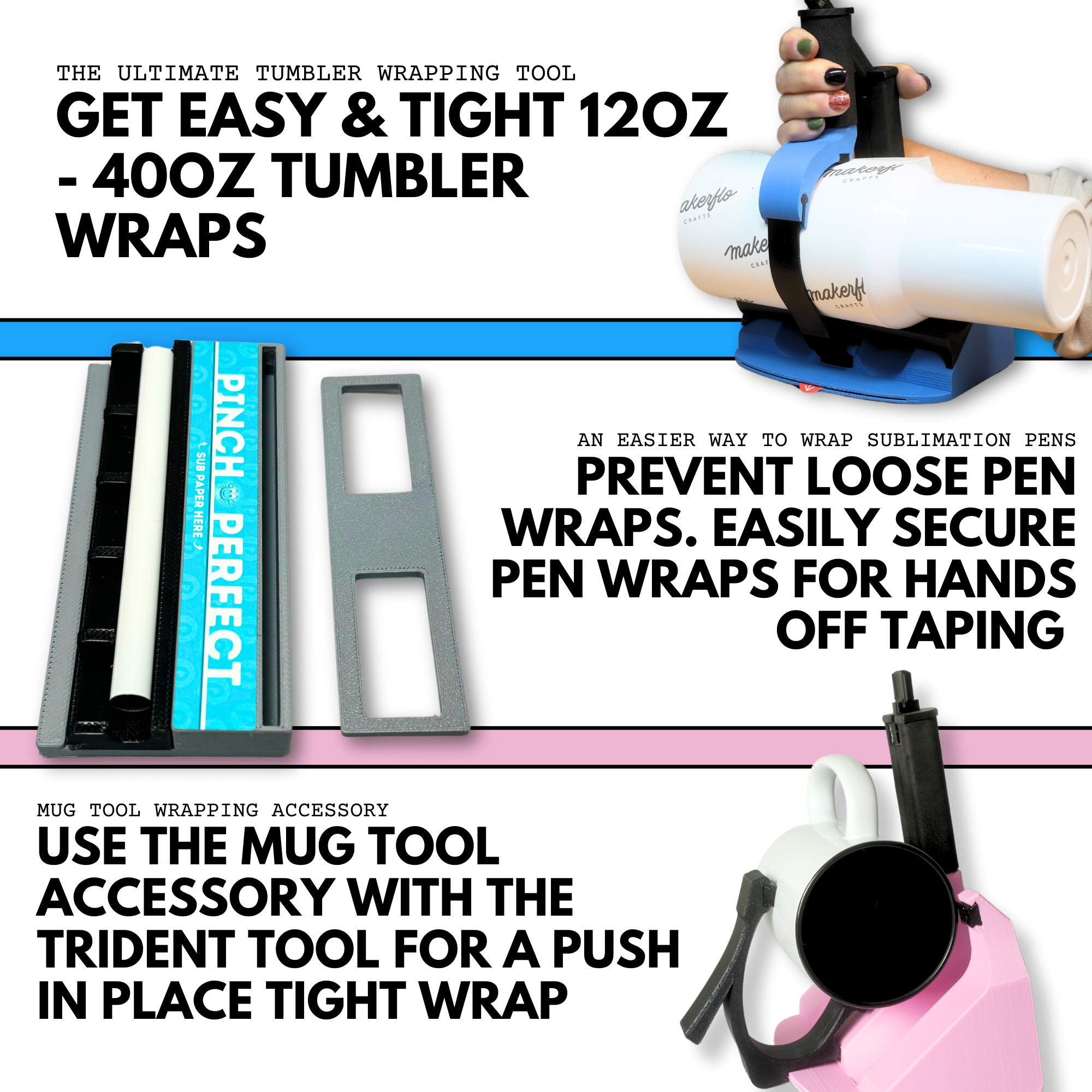 The Trident Pinch Perfect gives you, the hobby crafter or business owner, an effective way to sublimate all of your tumblers with ease and all with one tool.